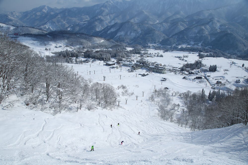 周りを気にせず滑れるワイドバーンが多いのが特徴です。 ファミリー向けから上級者向けのコースまである「若栗ゲレンデ」、非圧雪の急斜面やすべりやすい中斜面などがある「里見ゲレンデ」がベースになっています。アルプス第10ペアリフトでスカイビューゲレンデへ行くと、大自然の景観が楽しめます。