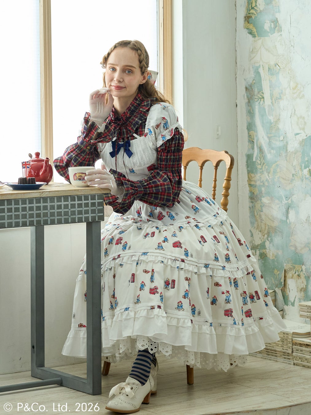 パディントン柄のオリジナルテキスタイルを身に纏いティーポットを片手にカップへ指をかけるひととき。パディントンと一緒に過ごす優雅なAfternoon Tea Dateをお楽しみください。