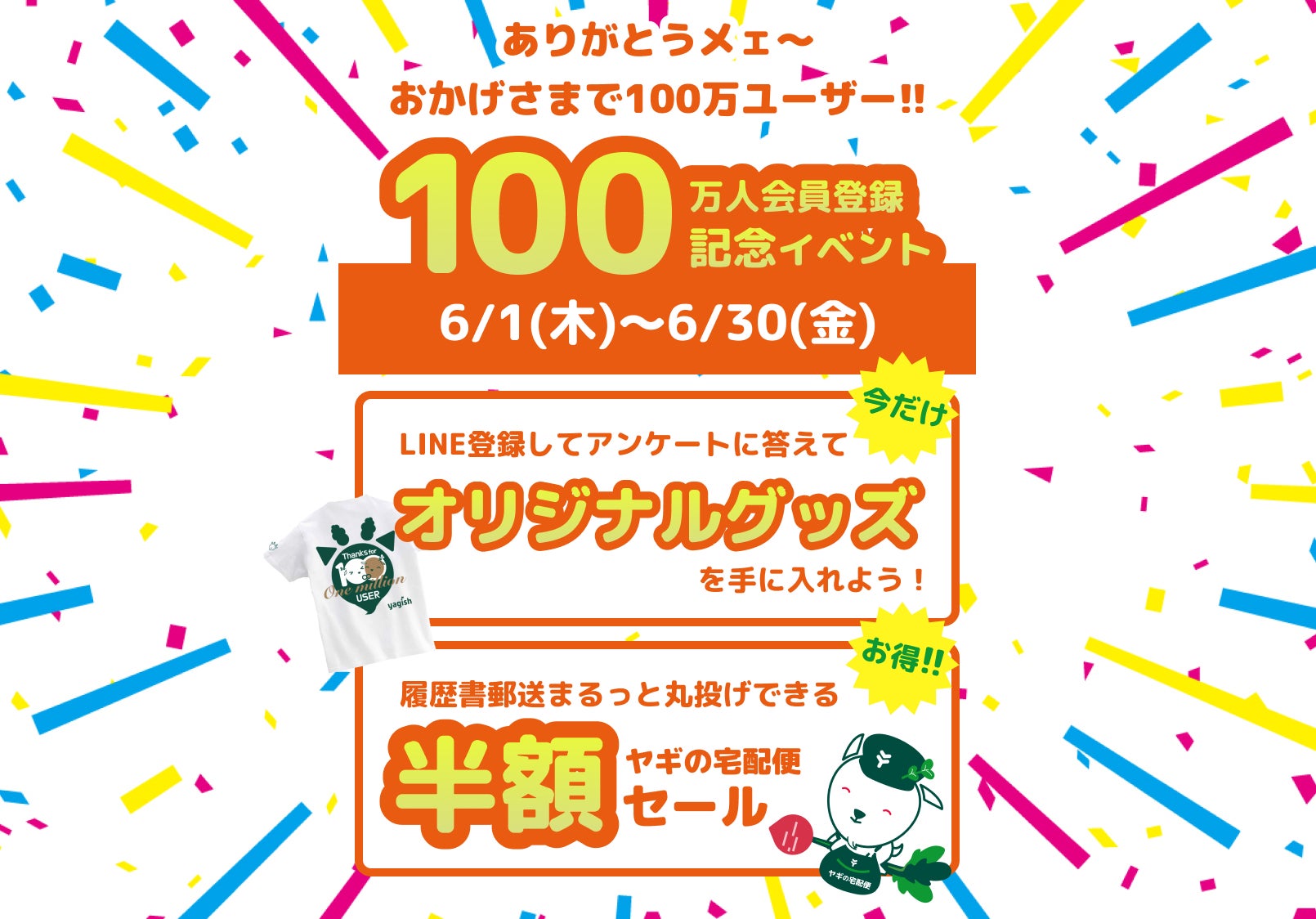 履歴書作成サービス「ヤギッシュ」の100万ユーザー登録感謝祭のお知らせ