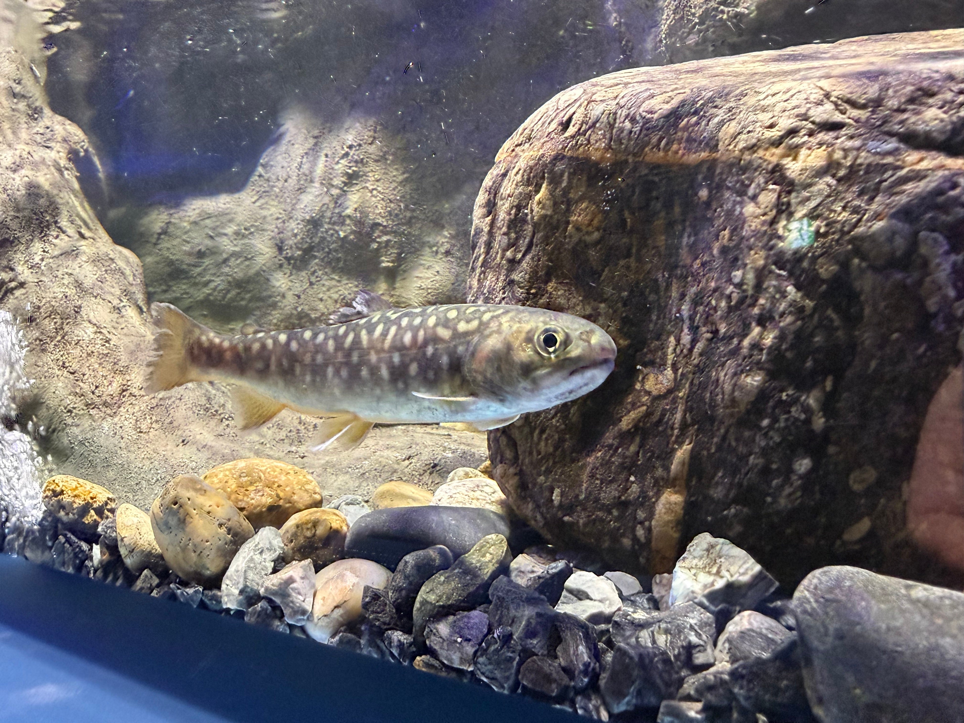 マリホ水族館の一番の見どころであった広島天然記念物「ゴギ」の広島の渓流を再現した水槽を、シン・マリホ水族館でも展示。「ゴギ」を含む淡水魚やサンゴ礁域の生物、クラゲの仲間などマリホ水族館で行っていた展示だけではなく、水辺や樹木などに生息する生物など新たな展示をしています。