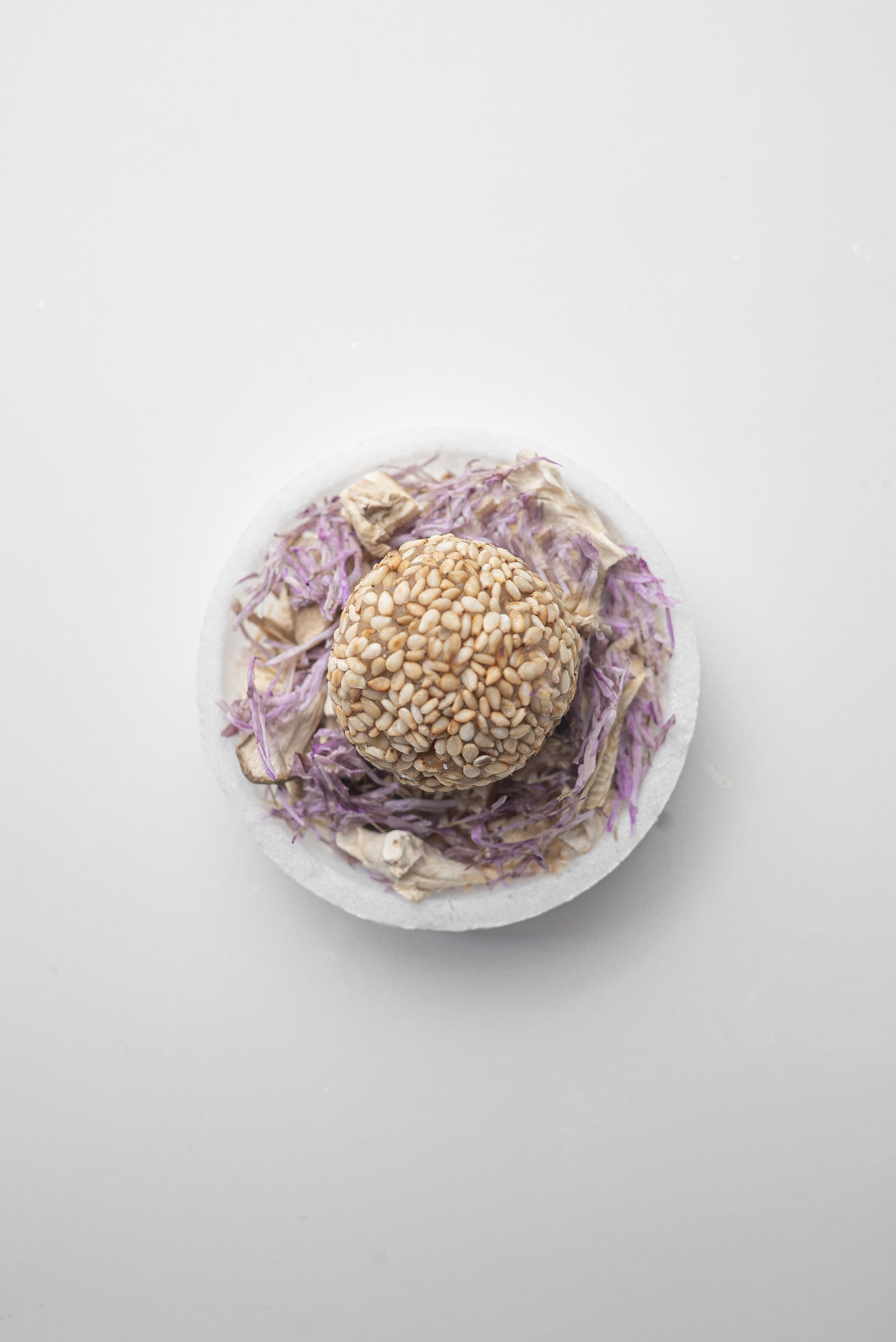 独特の香りと食感が魅力の舞茸と、秋の花でもある色鮮やかな菊の花びらを添えたスープ。のどぐろだしをブレンドした加賀みそに白ごまをトッピングし、華やかなビジュアルでありながら、食欲をそそる香ばしい食材が組み合わさった秋の花咲く新感覚の一杯。