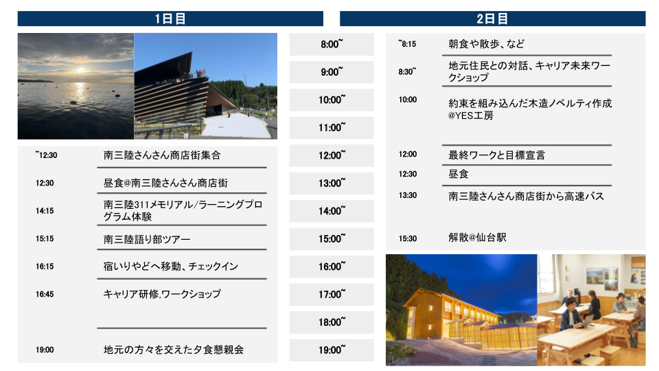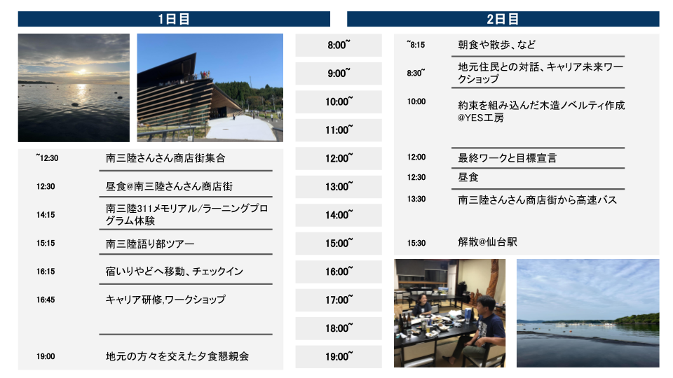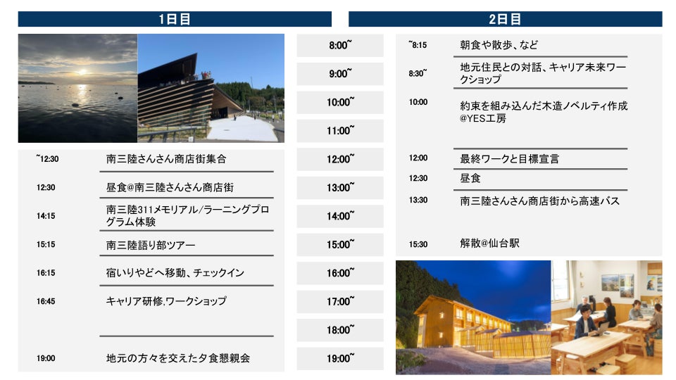 法人向けキャリアツーリズム第1弾として、「南三陸エリアプログラム」の提供を開始します。テーマは「今を大切に生きる。そして未来に繋げる。」です。