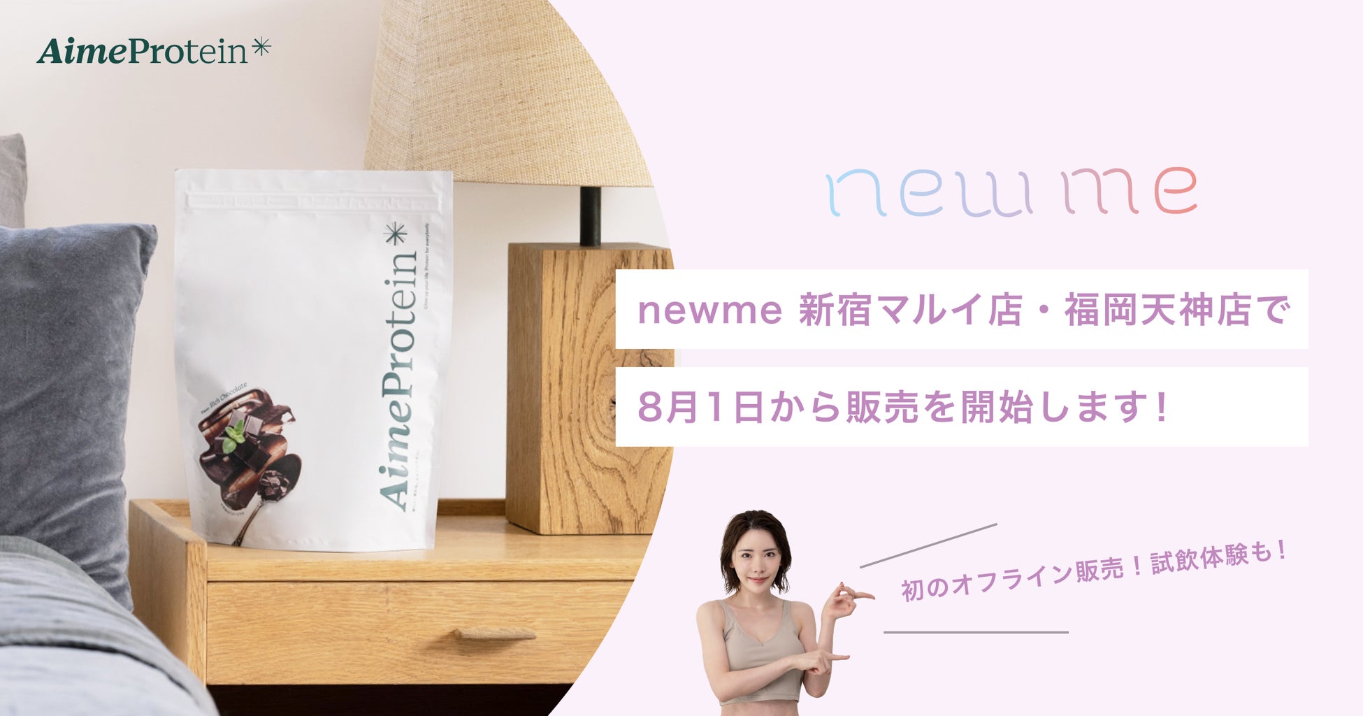 深田えいみプロデュース「Aime Protein(エメプロテイン)」が2022年8月1日(月)から体験型セレクトショップ「newme(ニューミー)」の福岡天神店、新宿マルイ店の2店舗にて販売開始