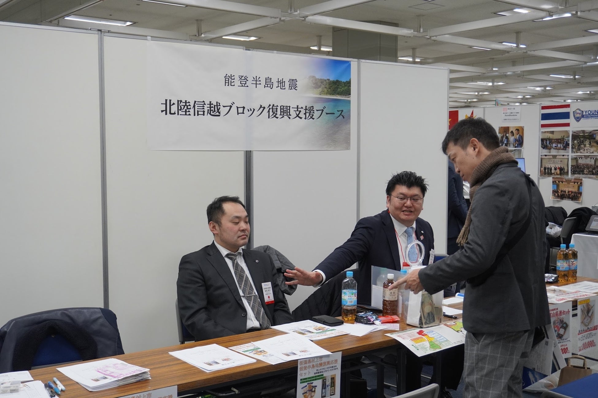 来場者に向けて日本YEGは、能登半島復興支援窓口を設置。会員間の絆を一層強固なものとし、活力ある地域とよりよい日本の経済と未来社会の実現に向けて取り組んでいく。