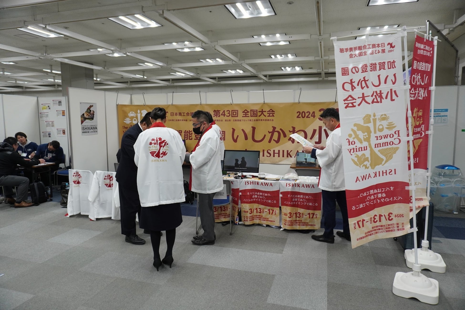 2024年3月13日~17日開催予定、第43回全国大会~加賀能登の國 いしかわ小松大会~ブースでは、メタバース会場を活用した大会PRやデモンストレーションが行われた。
