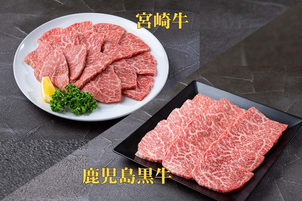 今回は和牛オリンピック第一位を獲得した「宮崎牛」(肉牛の部で一位獲得)と「鹿児島黒牛」(種牛の部で一位獲得)をご用意しております。