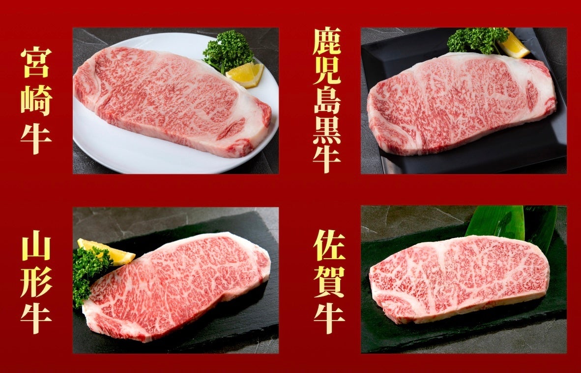目玉商品として、お得なブランド銘柄牛 4種食べ比べセットもご用意いたしました。宮崎牛・鹿児島黒牛に加え、前回までの販売でご好評をいただいた山形牛・佐賀牛の2種までも食べ比べできる贅沢なセットになります。