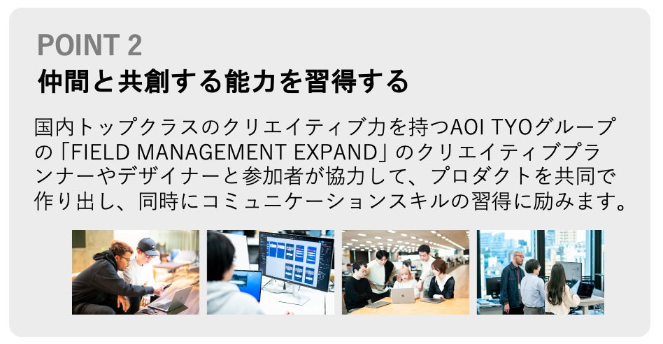 「Z世代を対象とした究極のパーソナライズサービス」というテーマのもと、 FIELD MANAGEMENT EXPANDとレアゾン・ホールディングスのチームは、N1-たった一人のユーザーが満足するパーソナライズドサービスを共同で作り上げました。ゲームやウェブ/アプリサービスに焦点を当て、クリエイターがアイデアを提案し、エンジニアと共に独創的な開発を次々と行いました。