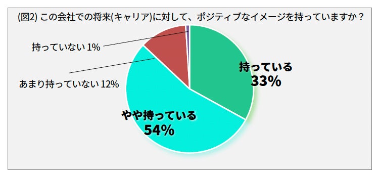 『GIFTech』発足にあたりエンジニアを対象とした2つの調査を実施。まず、株式会社レアゾン・ホールディングスに加え、menu株式会社、株式会社Preferred Robotics、株式会社AbemaTVなどIT業界で躍進し続ける企業に所属するエンジニアに向けて調査を行なったところ、「いまのエンジニアの仕事にやりがいや充実を感じているか」という質問に約80%が「やりがいを感じている」「やや感じている」と回答 (図1) 。さらに「この会社での将来に対して、ポジティブなイメージを持っているか」という質問には87%が「持っている」「やや持っている」と回答 (図2) 。約9割が現状に満足していることがわかり、自身の置かれている現状にポジティブな考え方を持っていることがわかりました。
