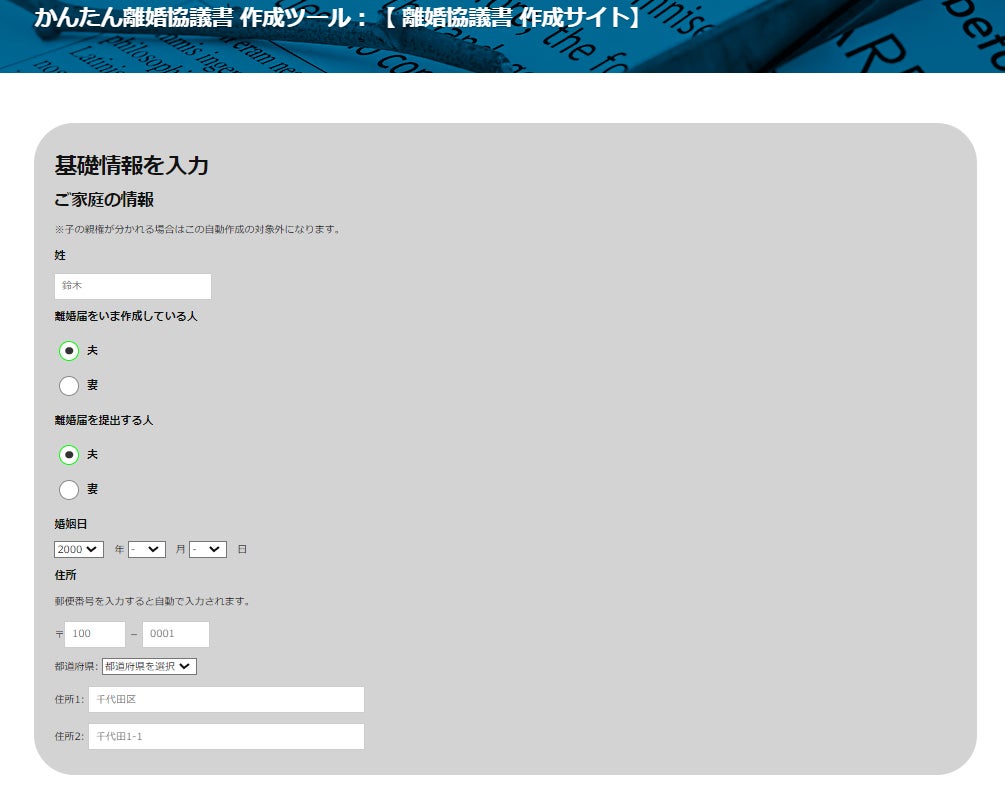 離婚に際して求められる離婚協議書を夫婦・家族の情報をベースに自動作成することができる便利なサイトです。