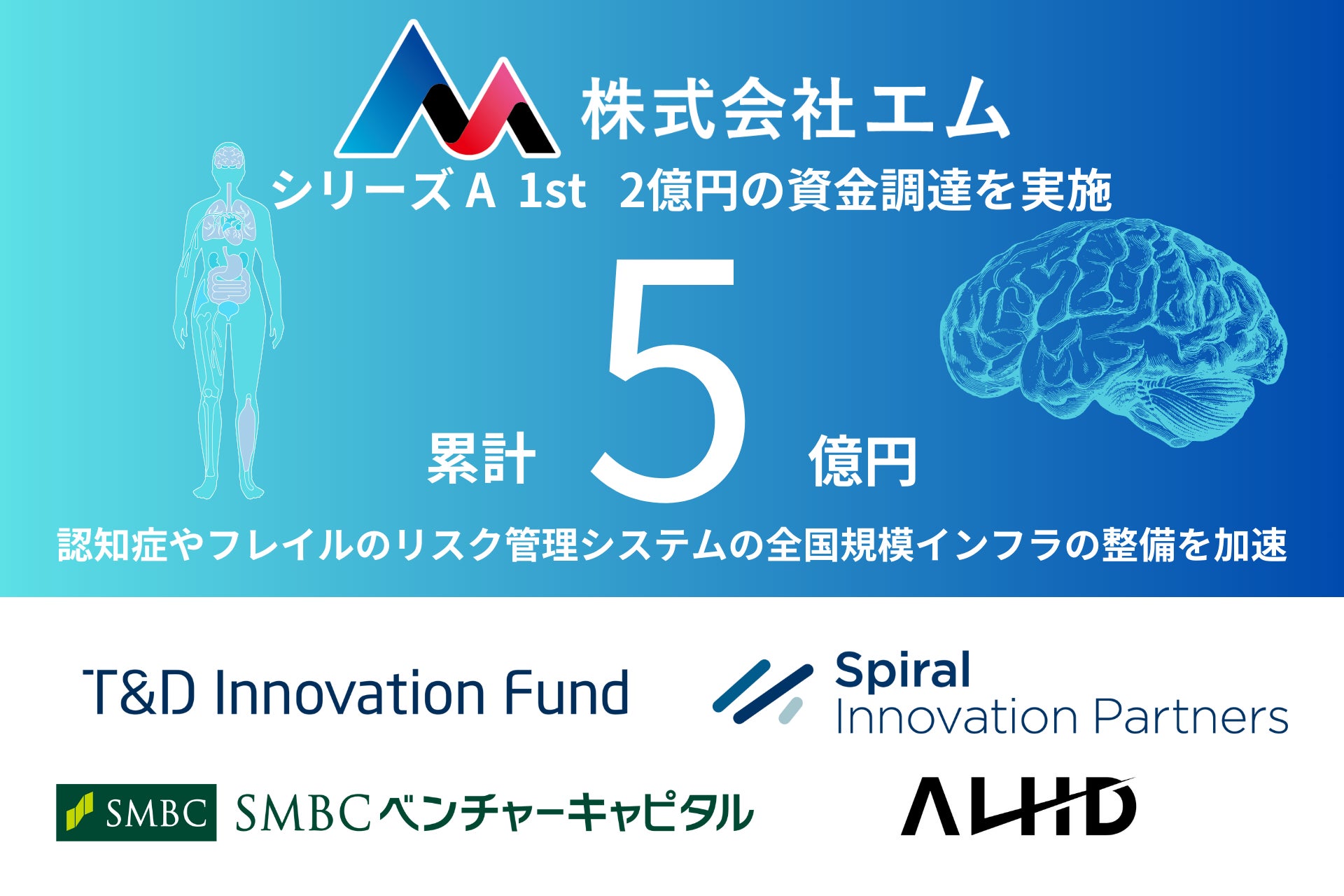 医療画像AIを活用した疾患予防システムの開発に取り組む株式会社エム(本社:東京都港区、代表取締役CEO:森 進、以下「エム」)は、Spiral Innovation Partners株式会社が株式会社T&Dホールディングスと共同で運営するT&D Innovation Fund (T&Dイノベーション投資事業有限責任組合)、株式会社SMBCベンチャーキャピタル、ALHD株式会社などを引受先とした第三者割当増資により、シリーズAラウンドのファーストクローズとして2億円の資金調達を実施したことをお知らせします。 この調達により、エムの累計調達額は5億円に達しました。今後、セカンドクローズでの調達も予定しています。