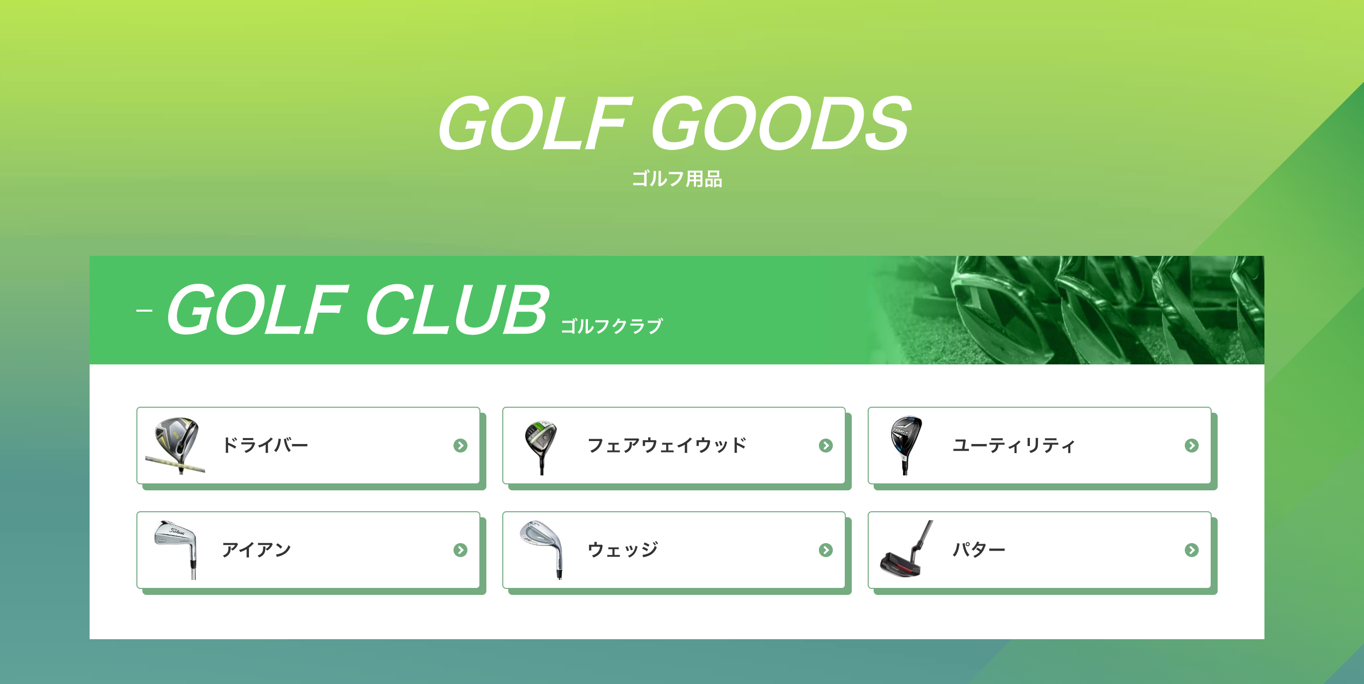 住んでいる場所・探しているゴルフ道具を最短で探せるようにトップページをリニューアルしました。「ゴルフ道具を見ているだけでワクワクする」というユーザーに対しても、上から下にスクロールするだけで、網羅的にゴルフ道具を眺められる設計となっています。