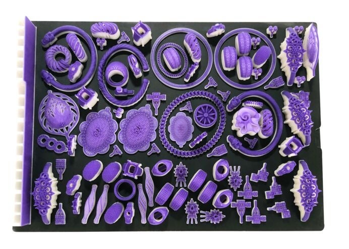 ProJet MJP 2500W Plus 3D は VisiJet 100% ワックス材料を用いて、正確で鋭利なエッジと極めて鮮明なディテールを備えた、CAD に忠実で優れたフィーチャ精細度を持つジュエリーパターンをプリントします。VisiJet