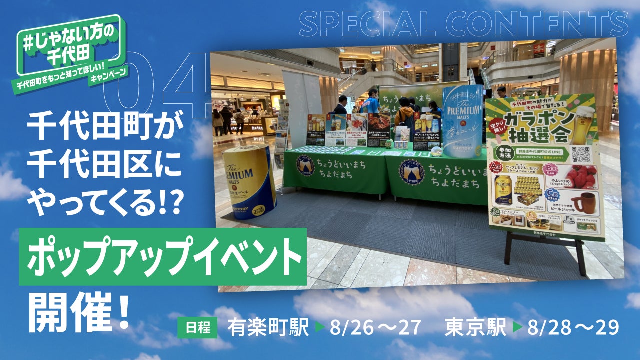 “千代田区のど真ん中”で“千代田町”を体感できるリアルイベントを開催。ふるさと納税返礼品の紹介や寄附受付、町の観光や様々な魅力紹介など実施予定です。イベント当日限定のプレゼントもご用意。「“千代田”という名前が同じだからこそ」実現するユニークな出会いの場を提供します。
