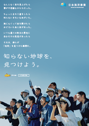 日本海洋事業株式会社は、“地球を愛する人たちの、未知への探求を「最前線」でリードする”をミッションに掲げ、海洋調査・海洋工事・海洋教育の「最前線」で、船舶や水中機器等の運航・運用管理を行っています。