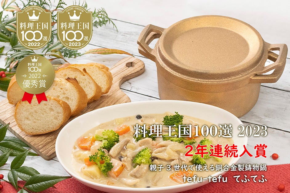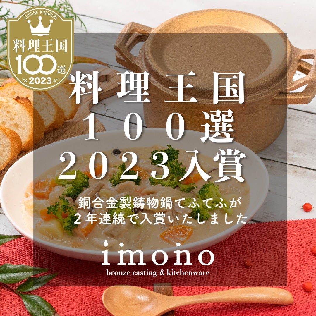 宮崎県北部にある銅合金専門の鋳造所、有限会社日向キャスティング(本社:宮崎県日向市東郷町山陰乙125、代表取締役:笹部直規)のキッチン用品製造ブランドimonoが手掛ける銅合金製鋳物鍋「tefu-tefu てふてふ」が、権威ある料理情報誌「料理王国」において、プロの料理人が選ぶ「料理王国2023 100選」を二年連続で入賞いたしました。