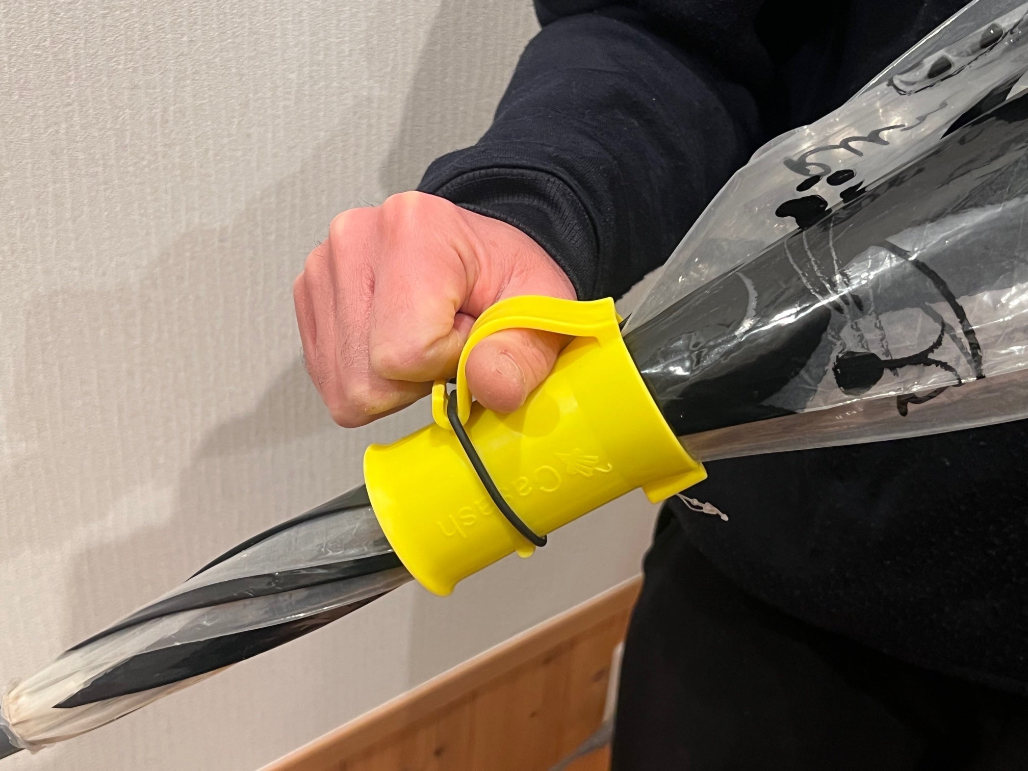 傘ホルダーCasashは、濡れた傘を「たたむ時」「持ち歩く時」の不快感を解消し、雨の日の外出の不便を解決する商品です。