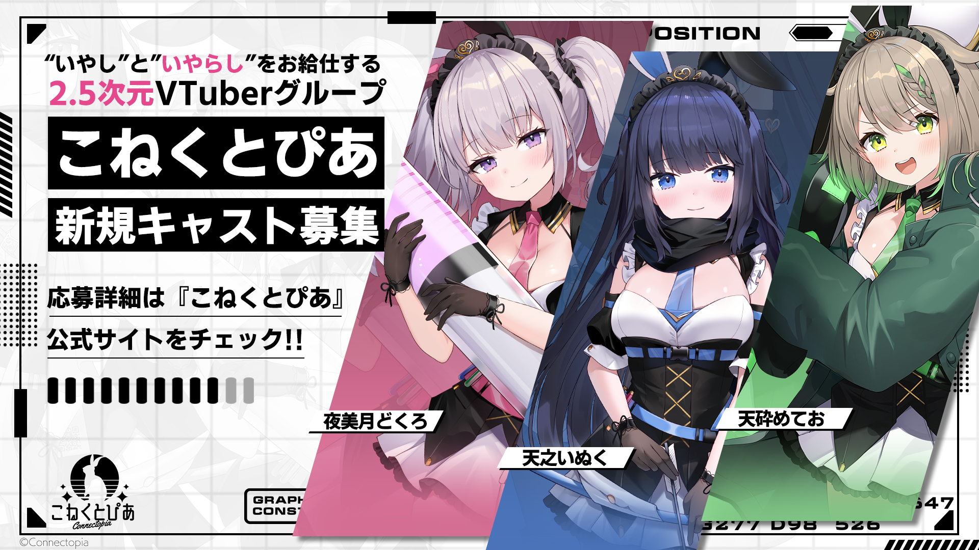 バーチャルメイド喫茶『こねくとぴあ』の一員として、今後一緒に働いてくださる新キャスト募集をスタートいたしました。