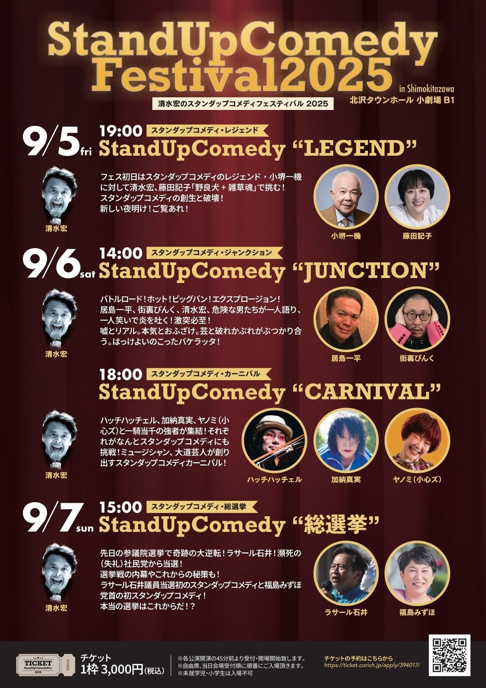 2025年9月5(金)~7(日)東京下北沢にてスタンダップコメディフェスティバル2025を開催します!