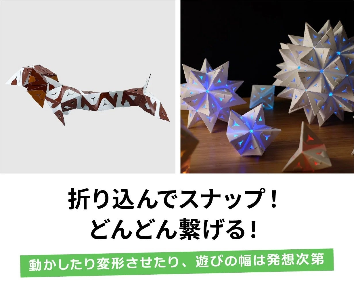 ピースを繋ぎ合わせてさまざまな形を作るパズルのようなペーパークラフト。子どもの創造力育成に最適