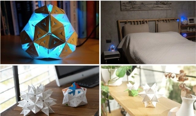 傑作ができたら、作品にスポットライトを当てる時間です。付属のLEDライトを内側に入れて照明を少し落とすと・・・幻想的な光のショーの開演です。
