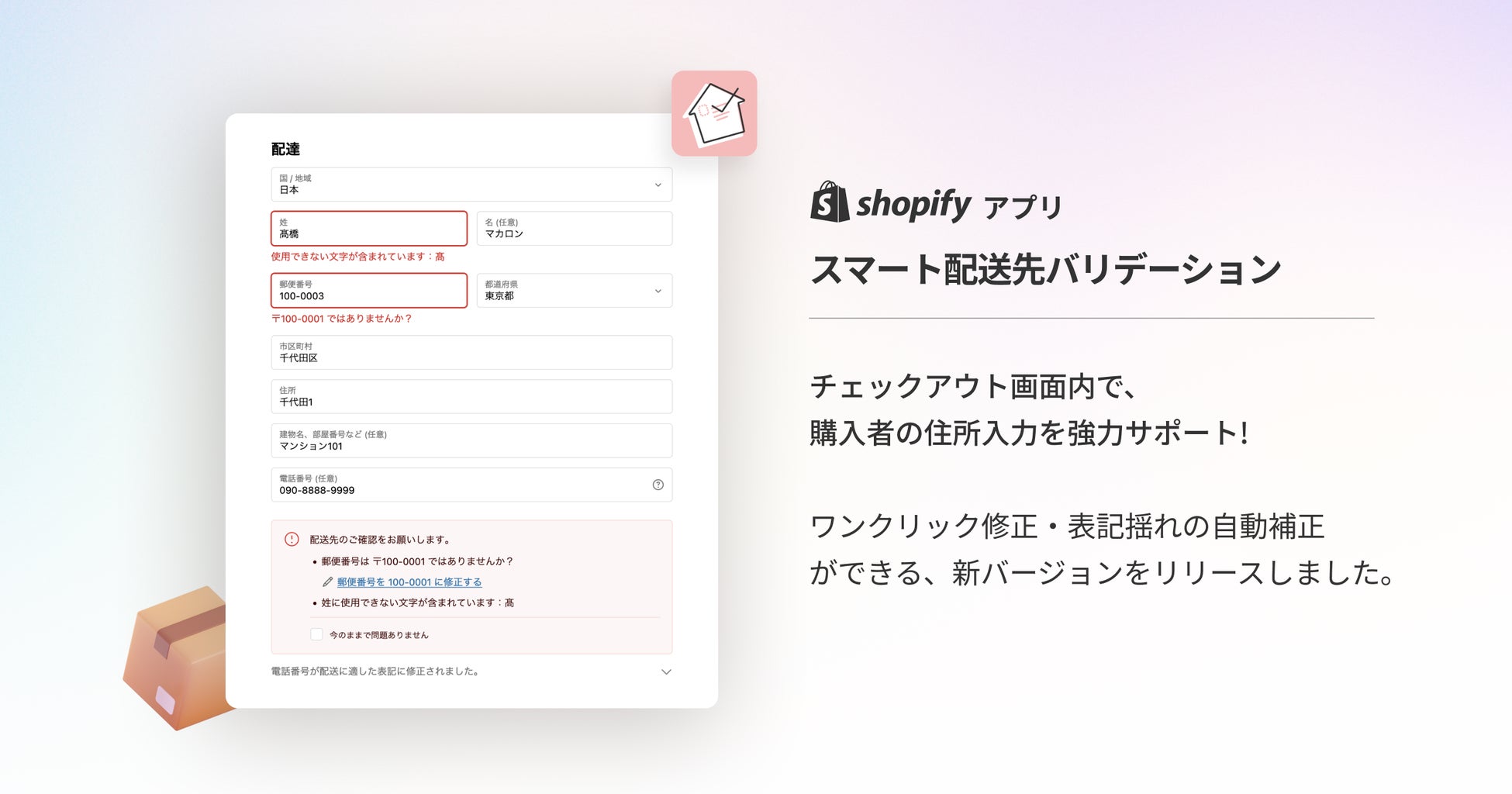 「スマート配送先バリデーション」チェックアウト画面での正確な配送先入力をサポートする新バージョンをリリースしました