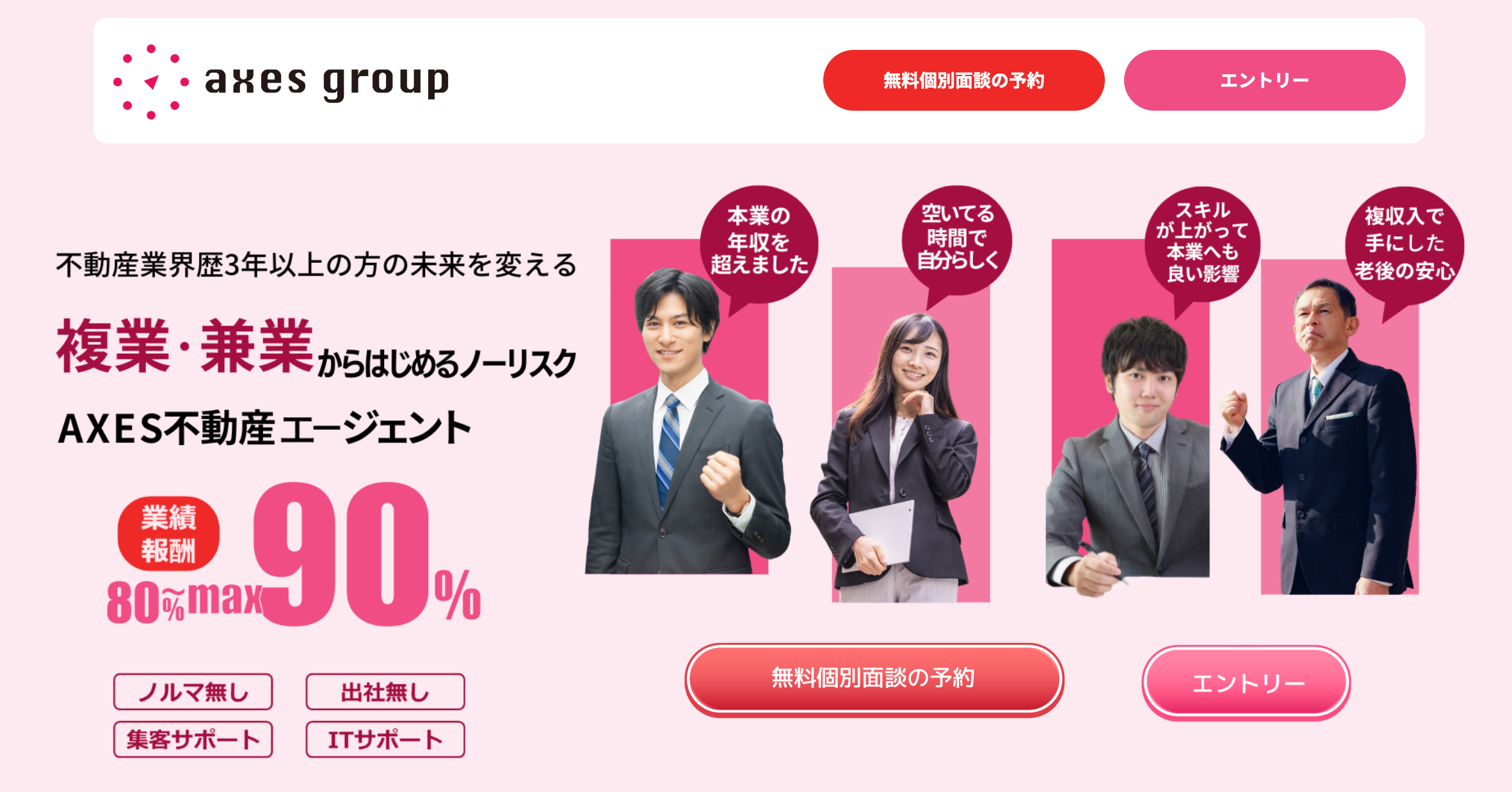 「AXES不動産エージェント」は、会議やミーティング、ノルマや出社義務もないので、負担なく複業・兼業を行うことが可能です。