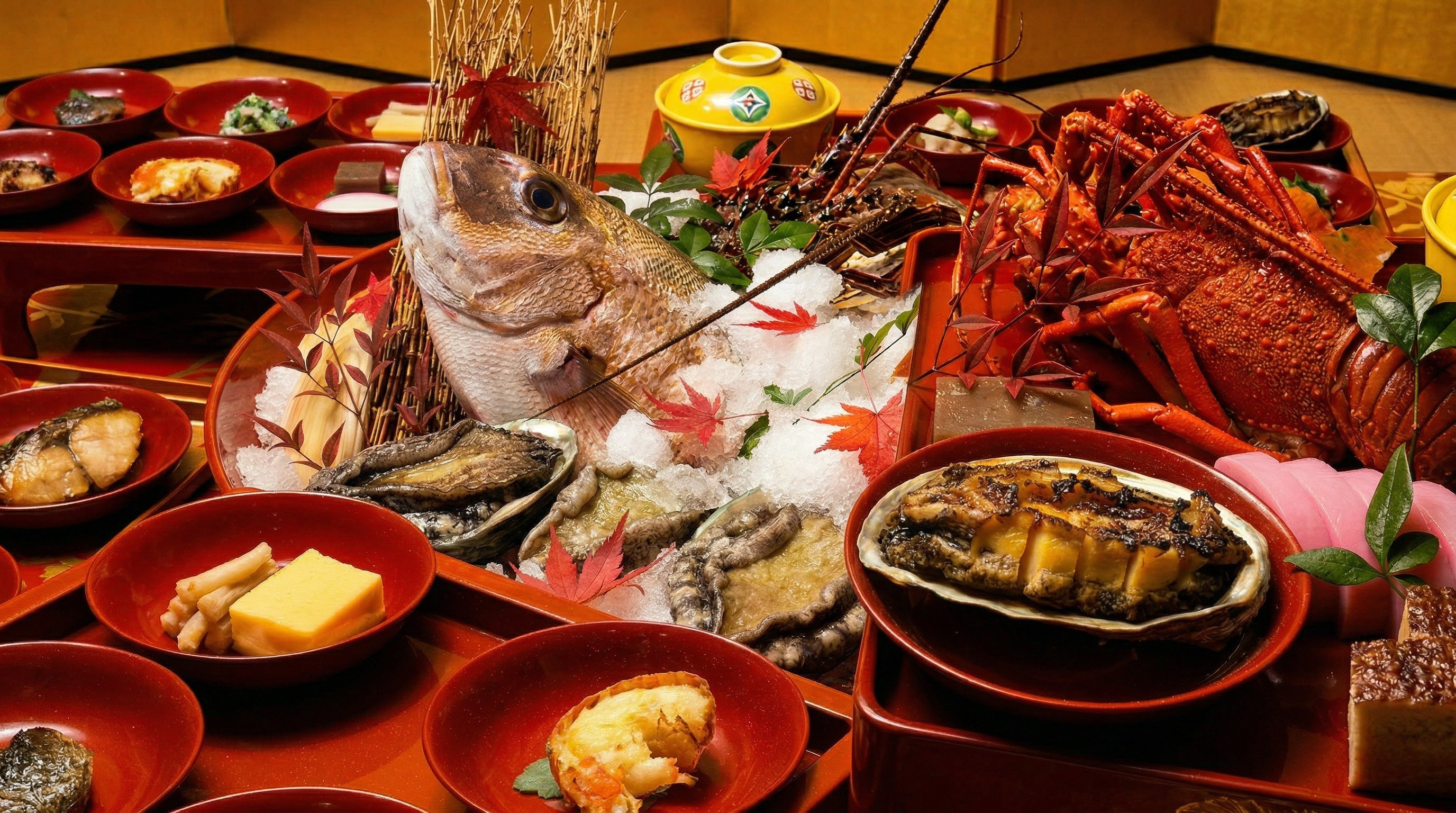 旅館の通常夕食の中で楽しめる現代版の将軍ディナーです。江戸のもてなし料理の構造や物語を残しながら、現代の味覚に合わせた一膳料理として提供されます。