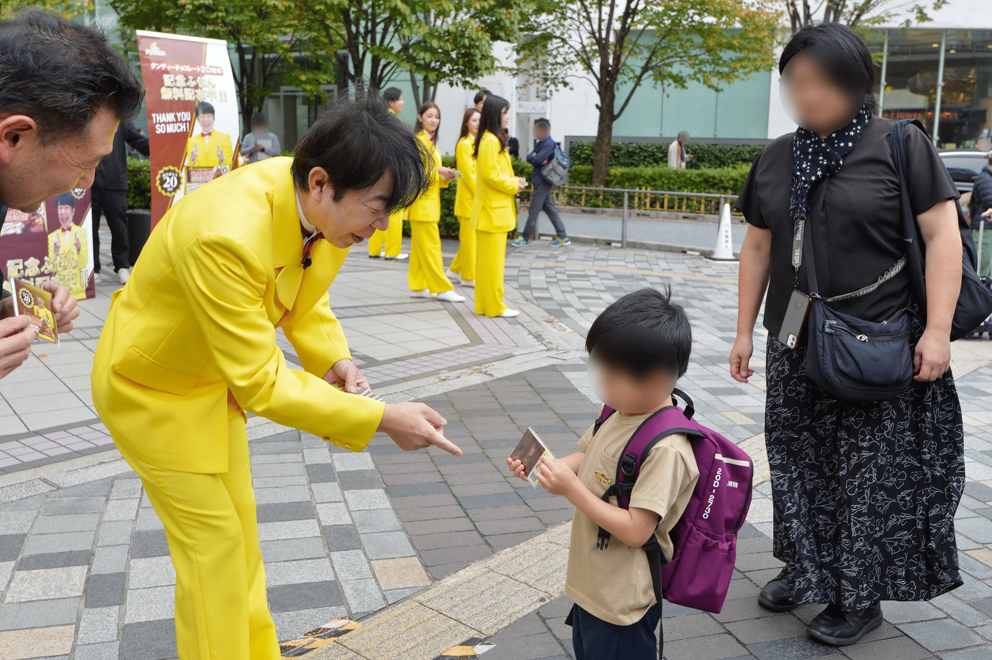 ダンディ坂野さんが有楽町駅に大量出現!?サラリーマンに愛される「ダンディー チョコレート」が20周年を記念し、限定グッズ配布イベントを実施