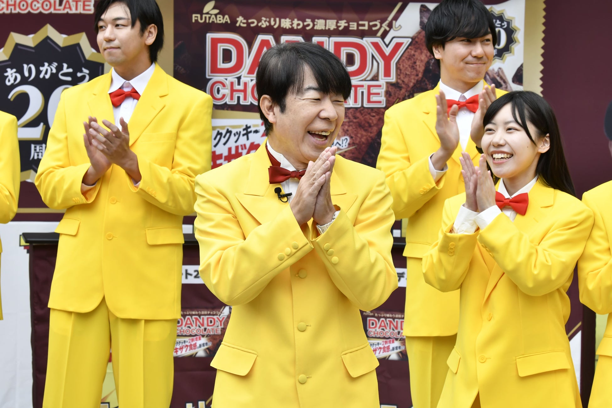 この度、ダンディーチョコレート20周年という特別なキャンペーンキャラクターを務めさせていただき、大変光栄に思っております。20人の黄色集団は初めてだったので自分自身ワクワクしていましたが、皆さんの反応も良くとても楽しいイベントとなりました。