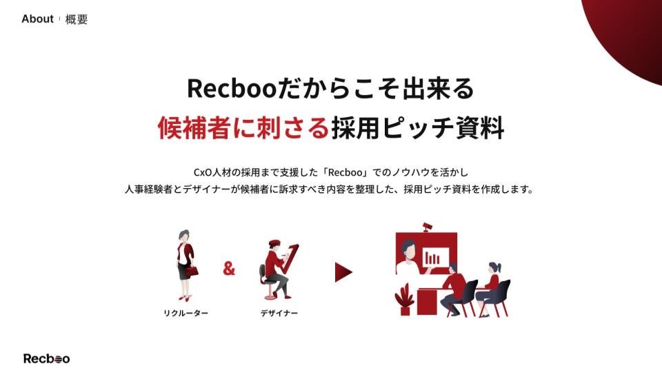 中途ハイレイヤー採用に特化したコンサルティング+代行サービス『Recboo(リクブー)』採用ピッチ資料制作サービスの提供を開始
