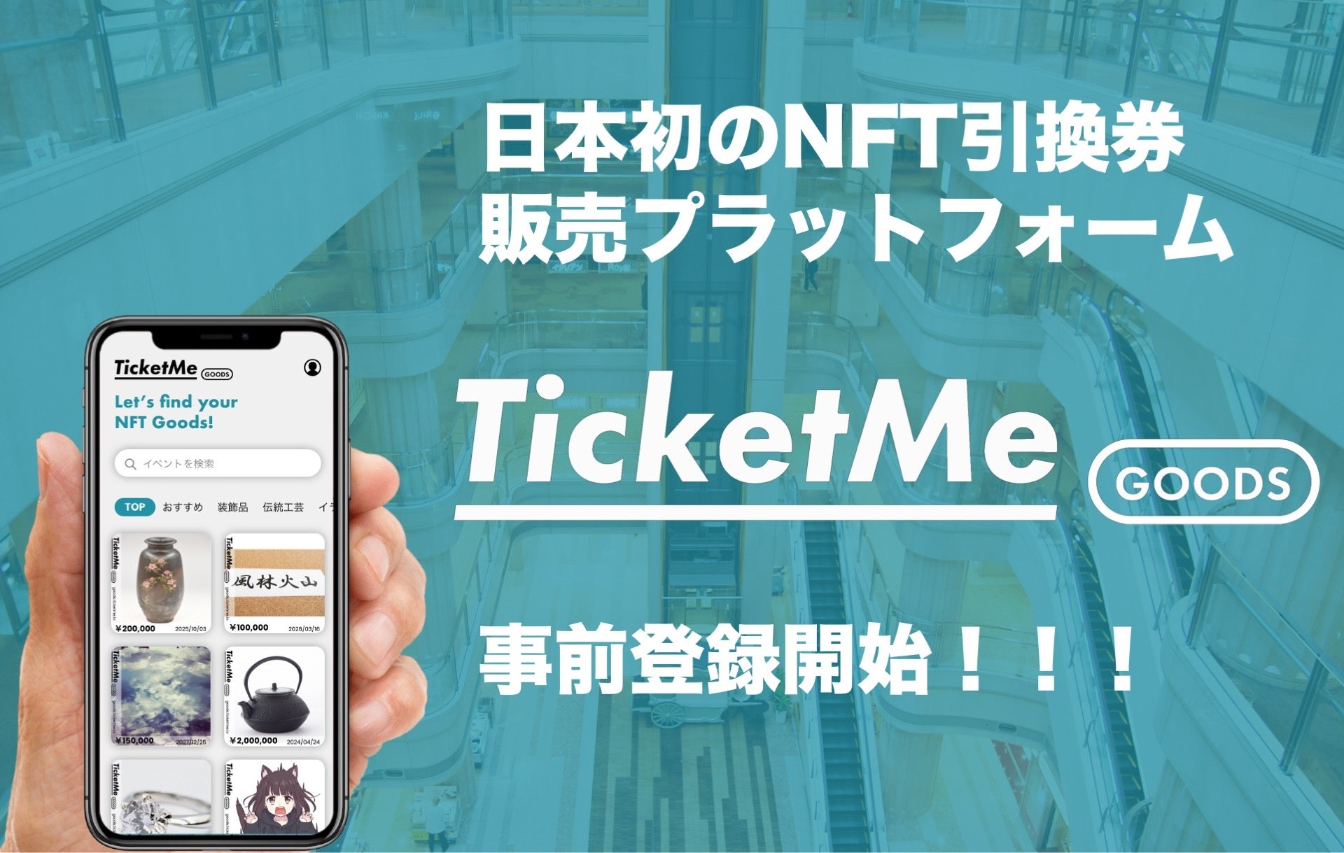 日本初のNFT引換券の販売プラットフォーム「TicketMe Goods」が事前登録を開始。NFT引換券を、誰でも売れて誰でも買える。絵画、伝統工芸品やお酒、その他ギフトの販売での利用を見込む。