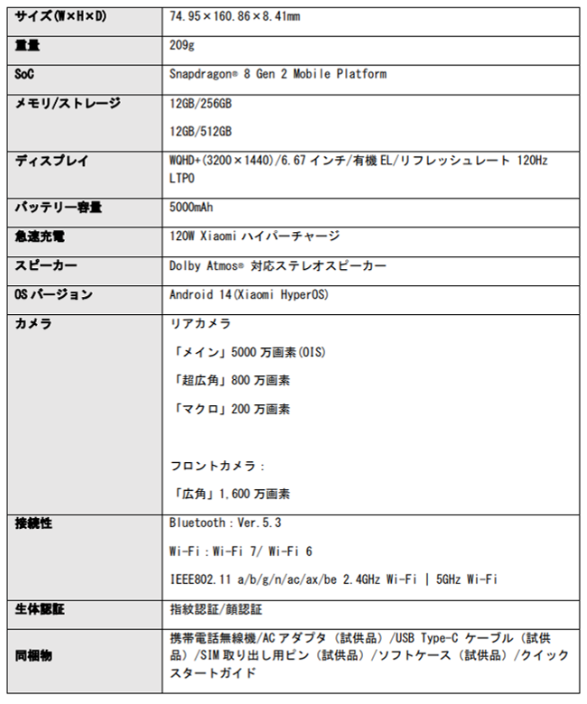 Xiaomi公式サイト(mi.com) :https://www.mi.com/jp/product/poco-f6-pro