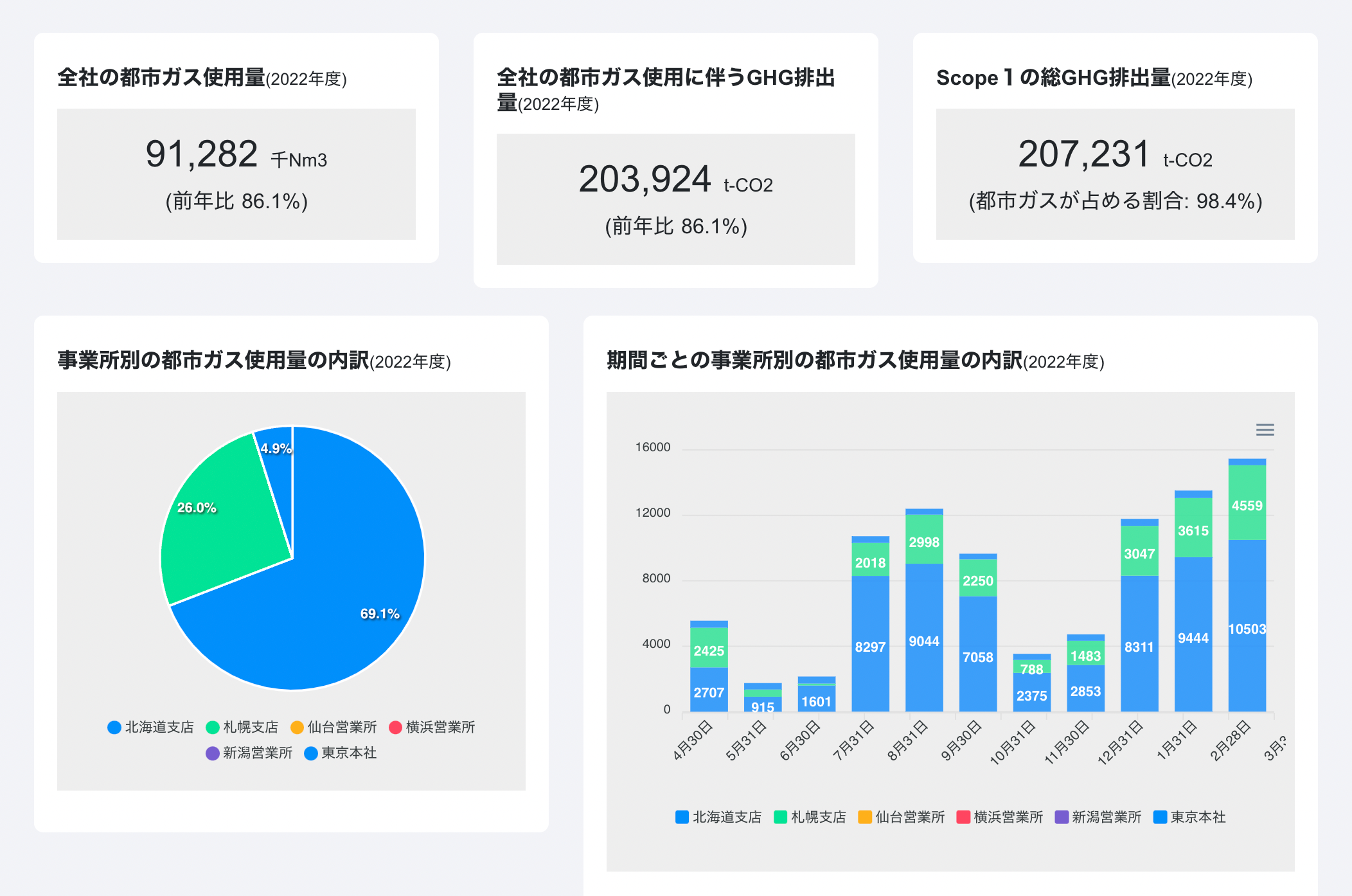 ・ 企業のGHG排出量を事業所別・エネルギー種類別に可視化
