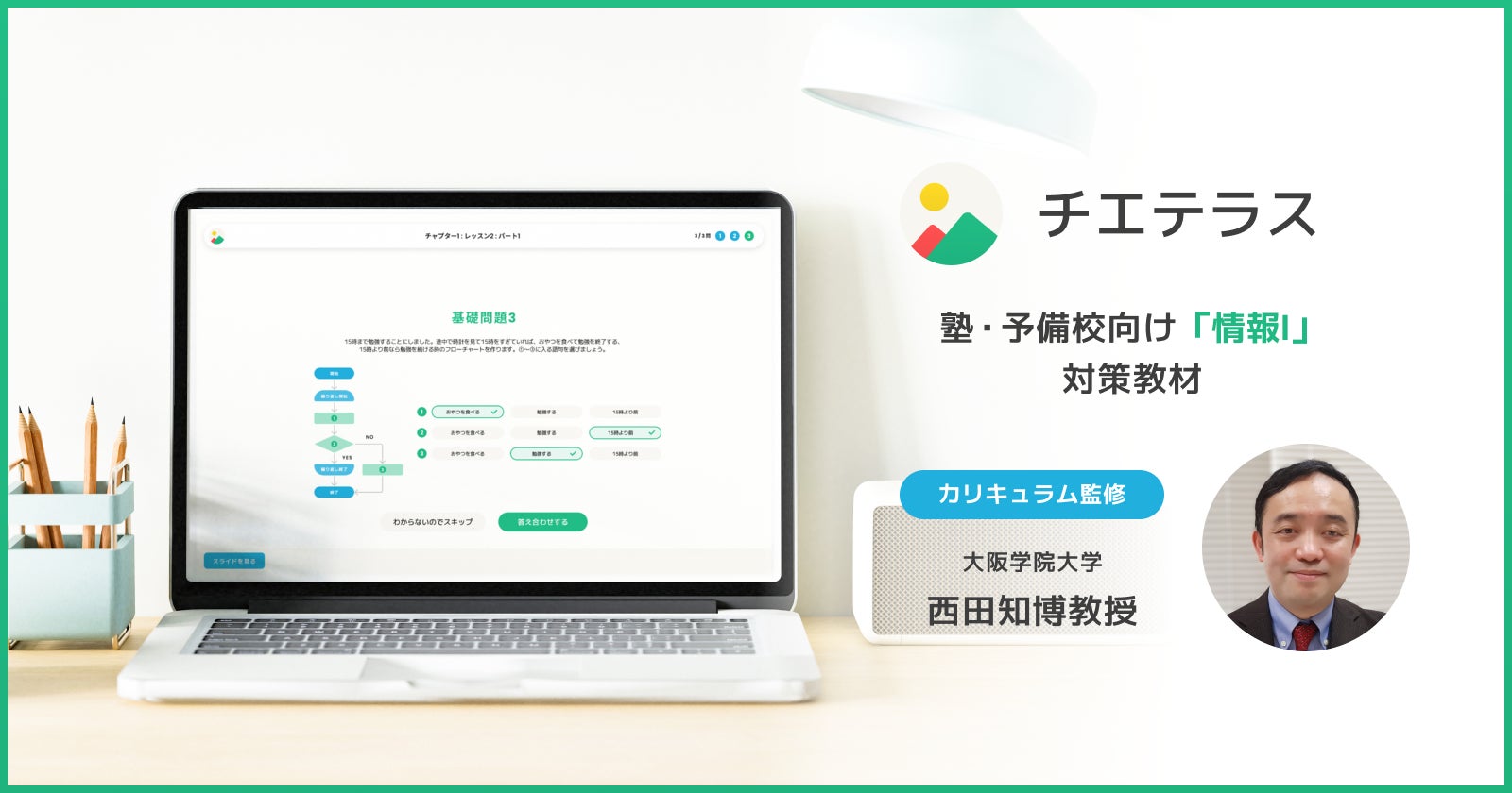 「情報」科目の試験対策をサポート!教科書執筆も手掛ける西田知博教授、学習塾向け「情報Ⅰ」EdTechサービス「チエテラス」のカリキュラムを監修