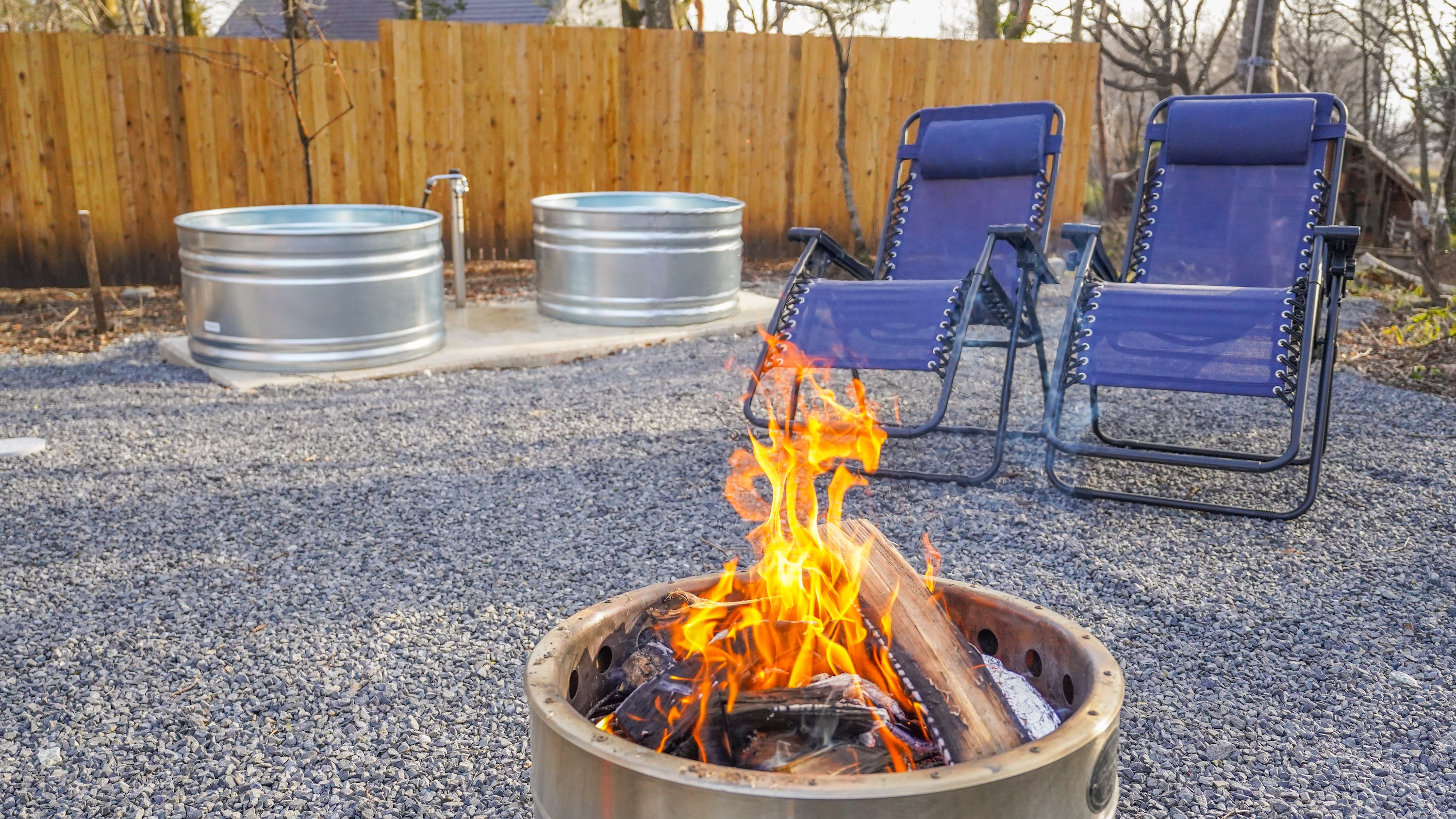 エストニア産の本格バレルサウナと大きな水風呂2台、リラクシングチェアーが設置されており、焚き火をしながら自然の中で心ゆくまでリラックスできます。