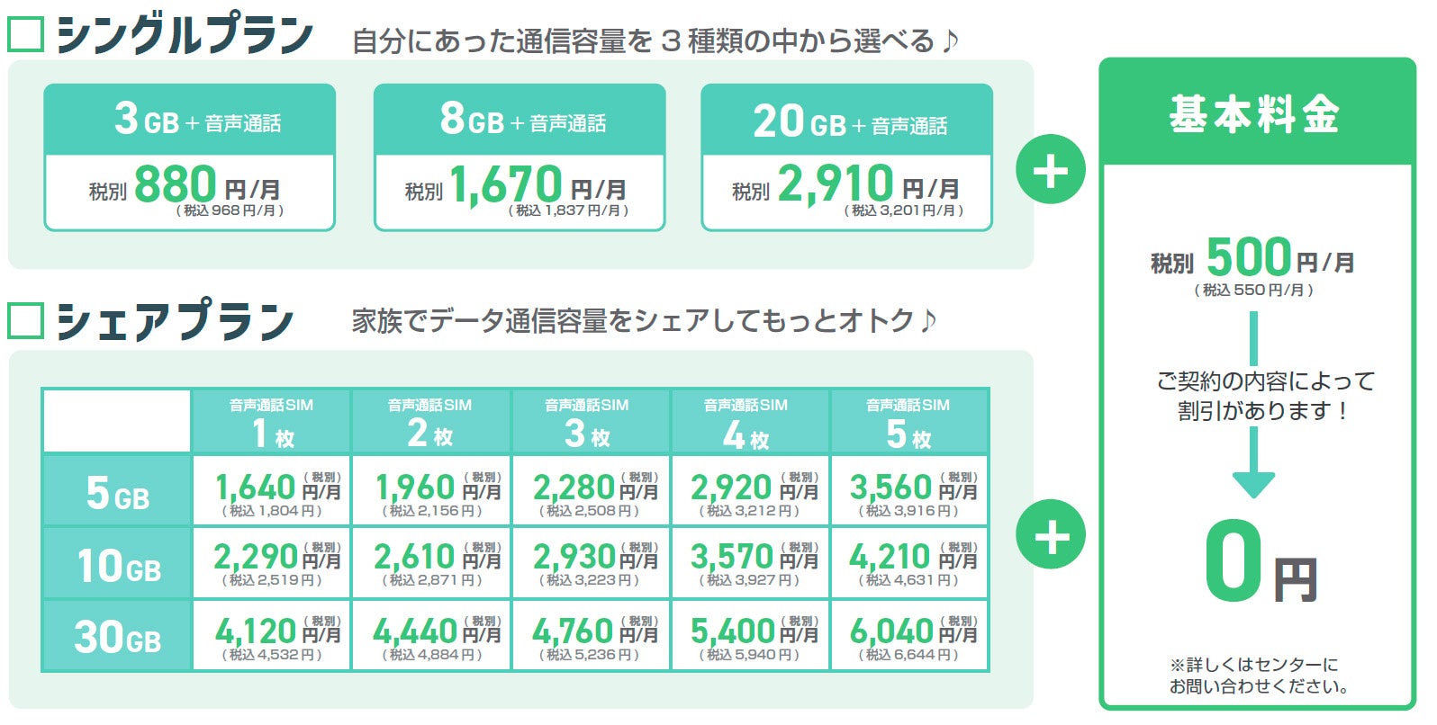 【 月額利用料 】:「シングルプラン」と「シェアプラン」お客さまに合わせて選べる料金プラン