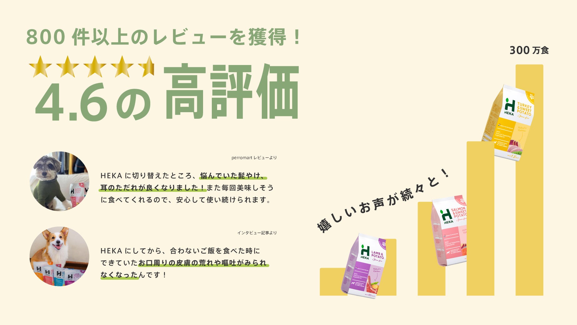 日本だけでなく海外でも大人気の犬用ドライフードである「HEKAグレインフリードッグフード」は販売開始から、300万食を突破いたしました!