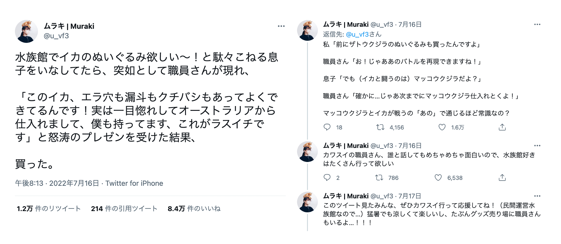 カワスイクルーとの9Fオフィシャルショップでのやりとりをお客さまがTwitterに書いてくださったことをきっかけに、投稿者の「ムラキ | Muraki」氏とのコラボレーションが実現しました。