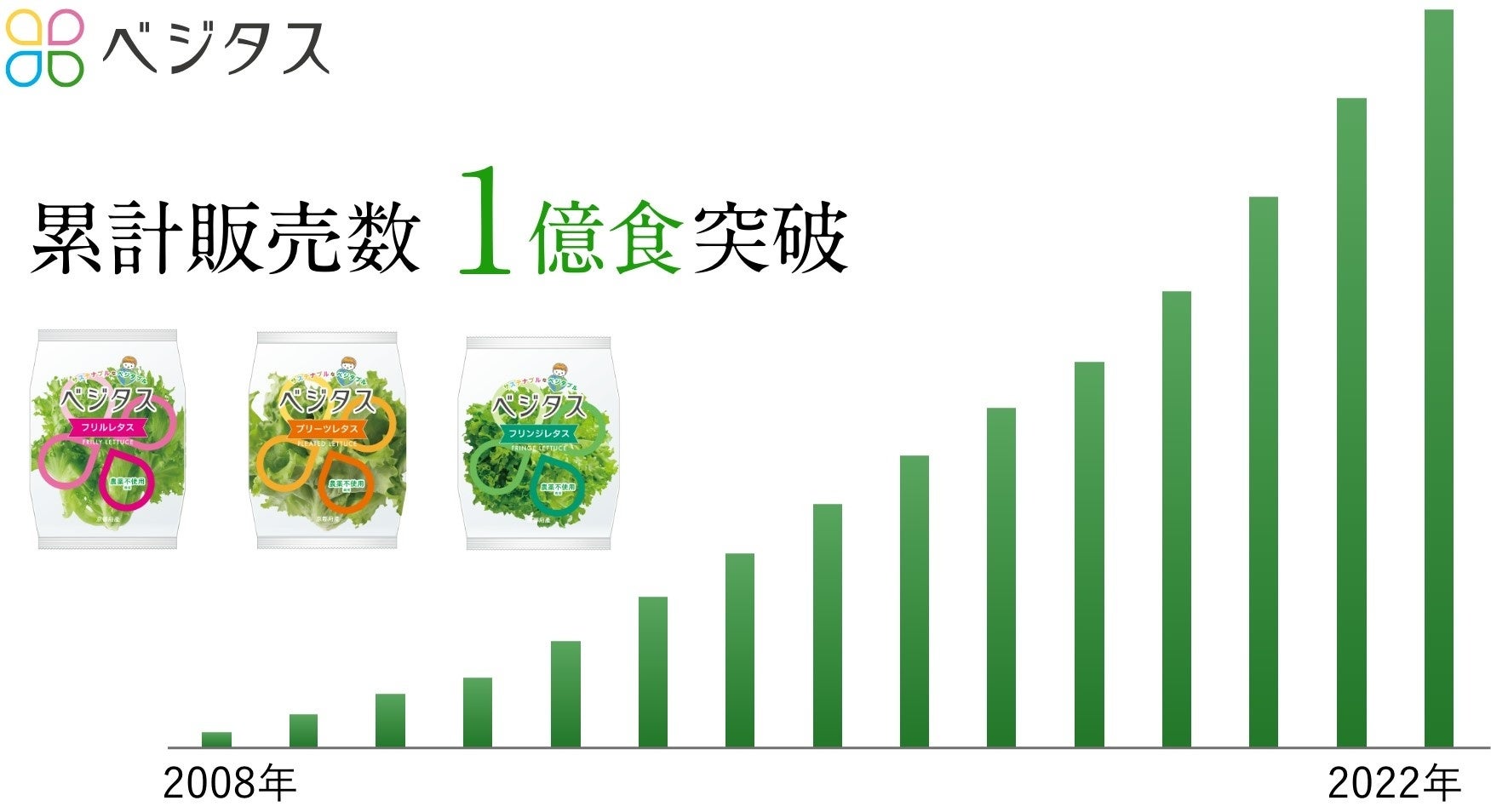 植物工場野菜『ベジタス』シリーズが、累計販売数1億食を突破!