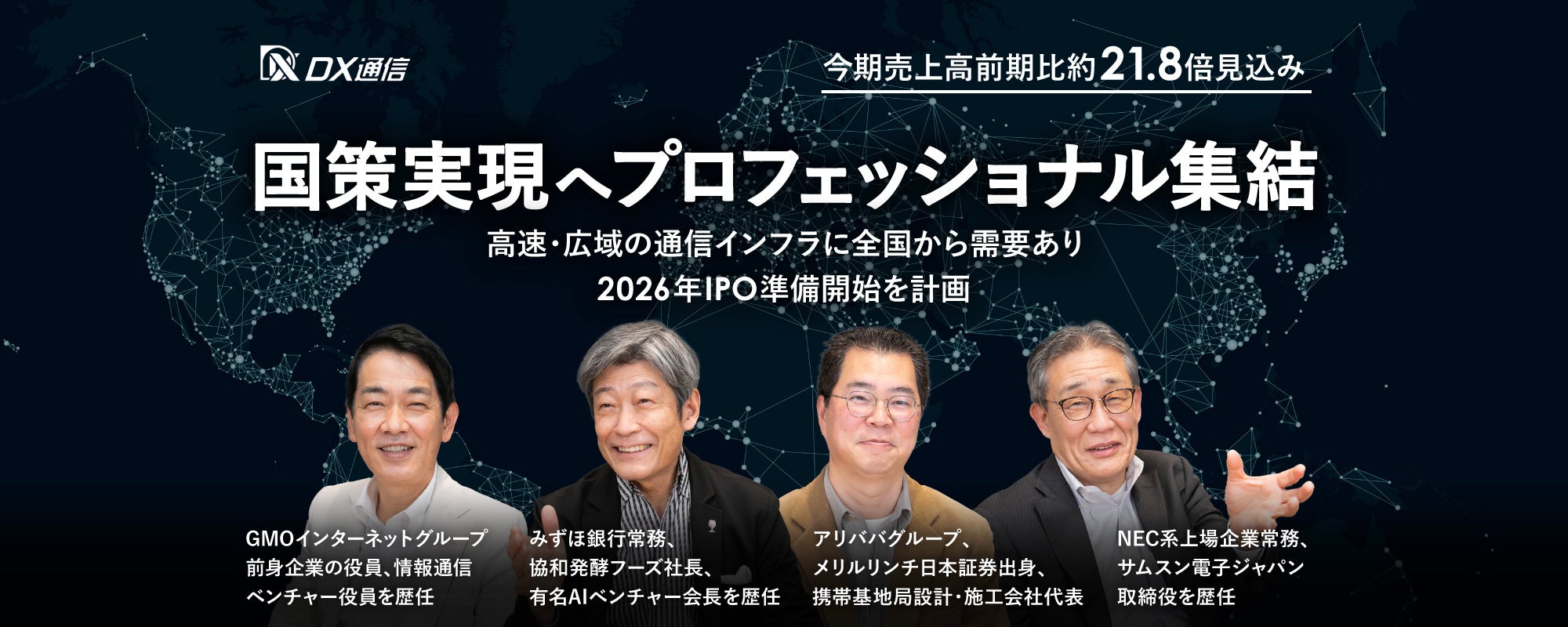 DX通信株式会社は、熱意を持った社員たちと、豊富な知識や経験を持つ社外の協力メンバーによって日々営業活動をおこなっております。今回の増資で、「広域Wi-Fi」の展開に必要な技術開発を加速度的に進め、より多くの自治体やお客様とコンタクトをとるため、人員体制の強化を図っていく所存です。