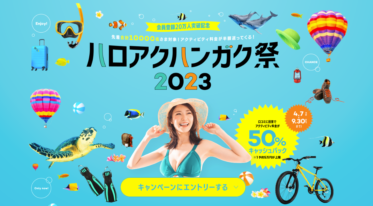 【4月7日より開始】1万名にアクティビティ参加代金の半額をキャッシュバック!「ハロアクハンガク祭 2023」開催