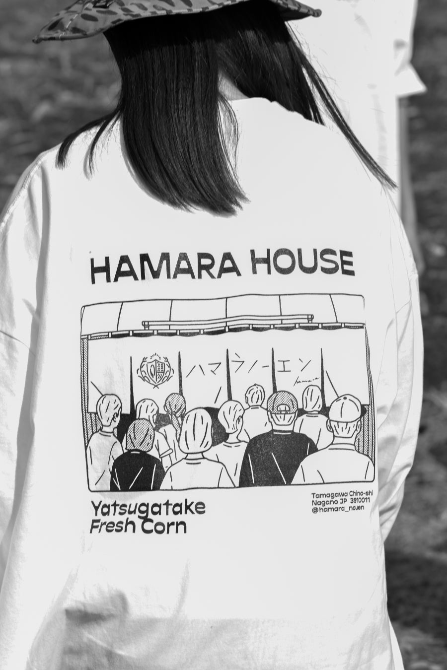 とうもろこしのシーズンはひと夏。とても短く儚いものです。シーズン終了後もハマラノーエンで過ごしたひと時や、来シーズンまでの繋がりを感じていただけるよう、シーズンにとらわれないライフスタイルグッズとして、ロングTシャツを制作いたしました。