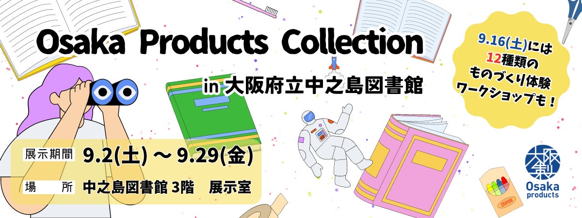 大阪府知事が認定する「大阪製ブランド認定事業(※)」では、9月2日(土)から9月29日(金)まで「Osaka Products Collection in 大阪府立中之島図書館」と題し、大阪府立中之島図書館で、2022年度に認定された17製品や過去に認定された製品を展示するイベントを開催します。