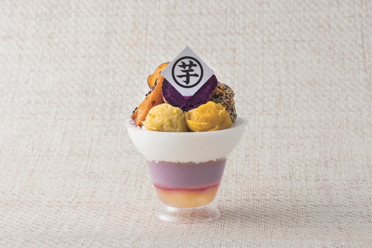鹿児島から直送のさつま芋たちは、一度焼き芋にしたものをペースト状にし、使用しております。カリっとした食感がうれしい金時芋棒やたっぷりのごまをまとった胡麻さつまも入れました。あっさりミルクと濃厚バニラの2種類のアイスとの相性も抜群です。グラスの底までお芋の美味しさを詰め込みました。