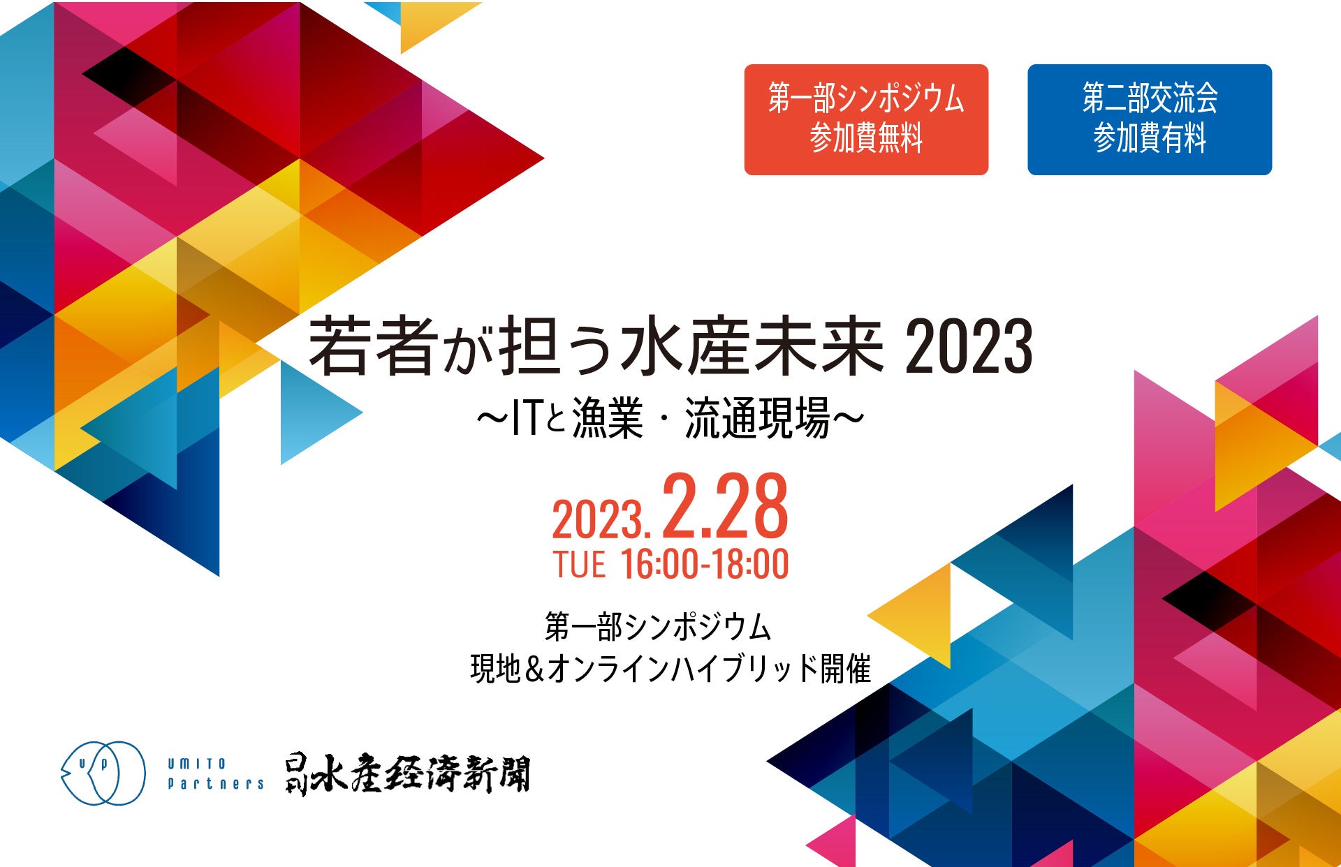 「おいしい漁業が、続く社会を。」をコンセプトに、サステナブルな漁業・養殖業の推進を行う株式会社UMITO Partners (本社:東京都渋谷区、代表取締役:村上春二)は、株式会社水産経済新聞社(本社:東京都港区、代表取締役安成就三)と共同で、2023年2月28日(火)に、シンポジウム「若手が担う水産未来 2023〜ITと漁業・流通現場〜」を開催します。