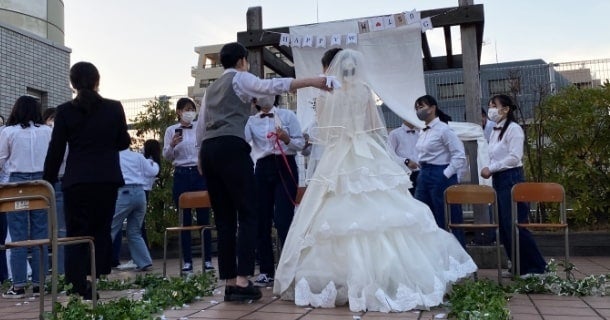 本物のカップルの結婚式を中村国際ホテル専門学校ブライダルコースの学生たちがプロデュース!事前に打ち合わせを重ね、準備した結婚式をご見学いただけます。