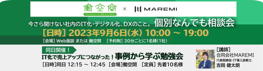 それぞれ「状況・ITスキル・目的」には違いがあるので、今回は、デジタルマーケティング、デジタル化推進の講演実績のある、DX学校秩父校(運営:合同会社MAREMI(マレミ))代表の吉岡健太朗が皆さまのお悩みについて個別で丁寧に回答。