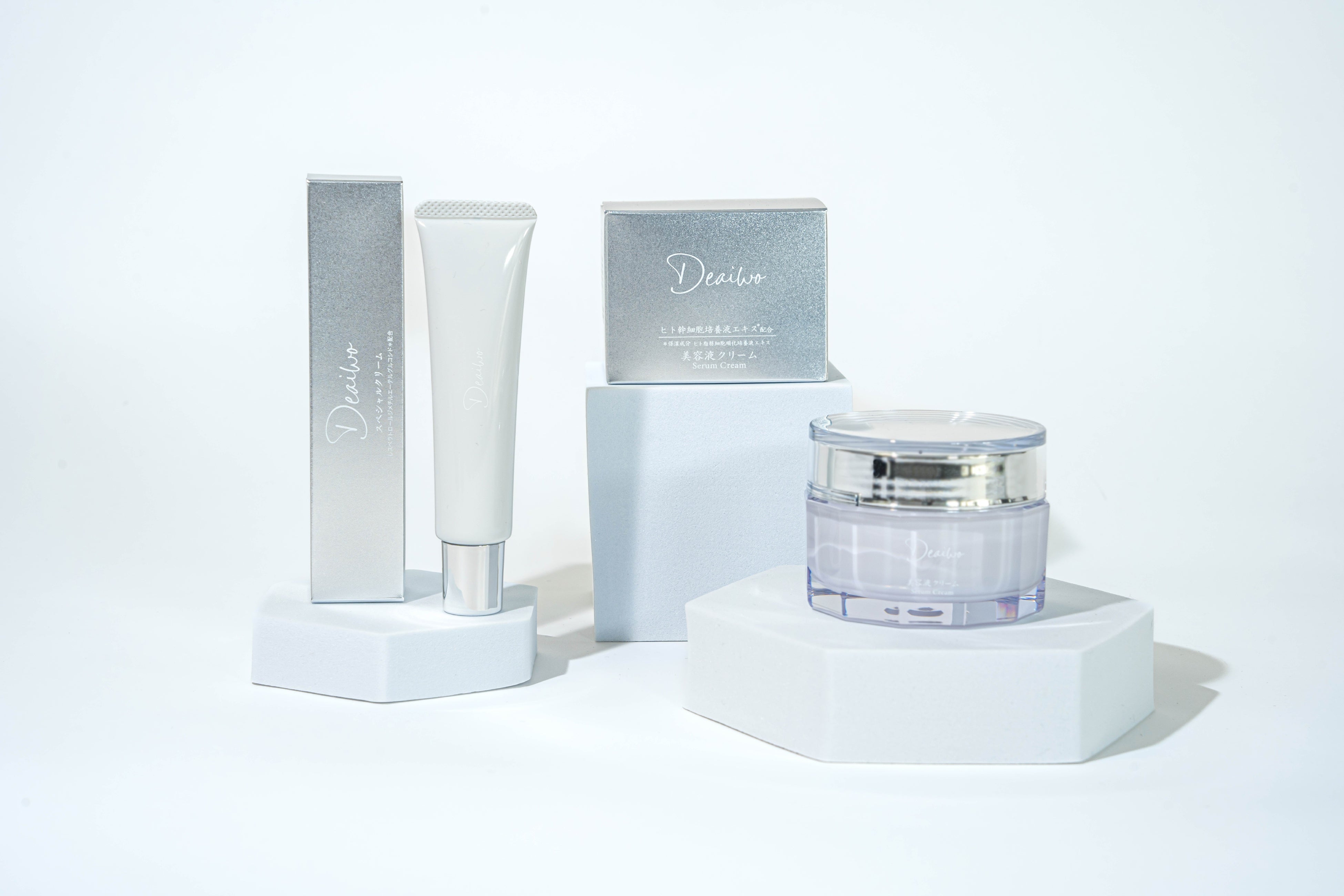 整肌保湿を一つでカバーできるデアイヲビヨウエキクリーム。目元のケアや、エイジングケアとして、より集中保湿に特化したデアイヲスペシャルクリーム。2023/11/17には、Deaiwoブランド初のヘアコスメとして、白髪・薄毛カバーを目的とした1DayヘアカラーDeaiwo117ヘアカラースプレーを新発売致しました。