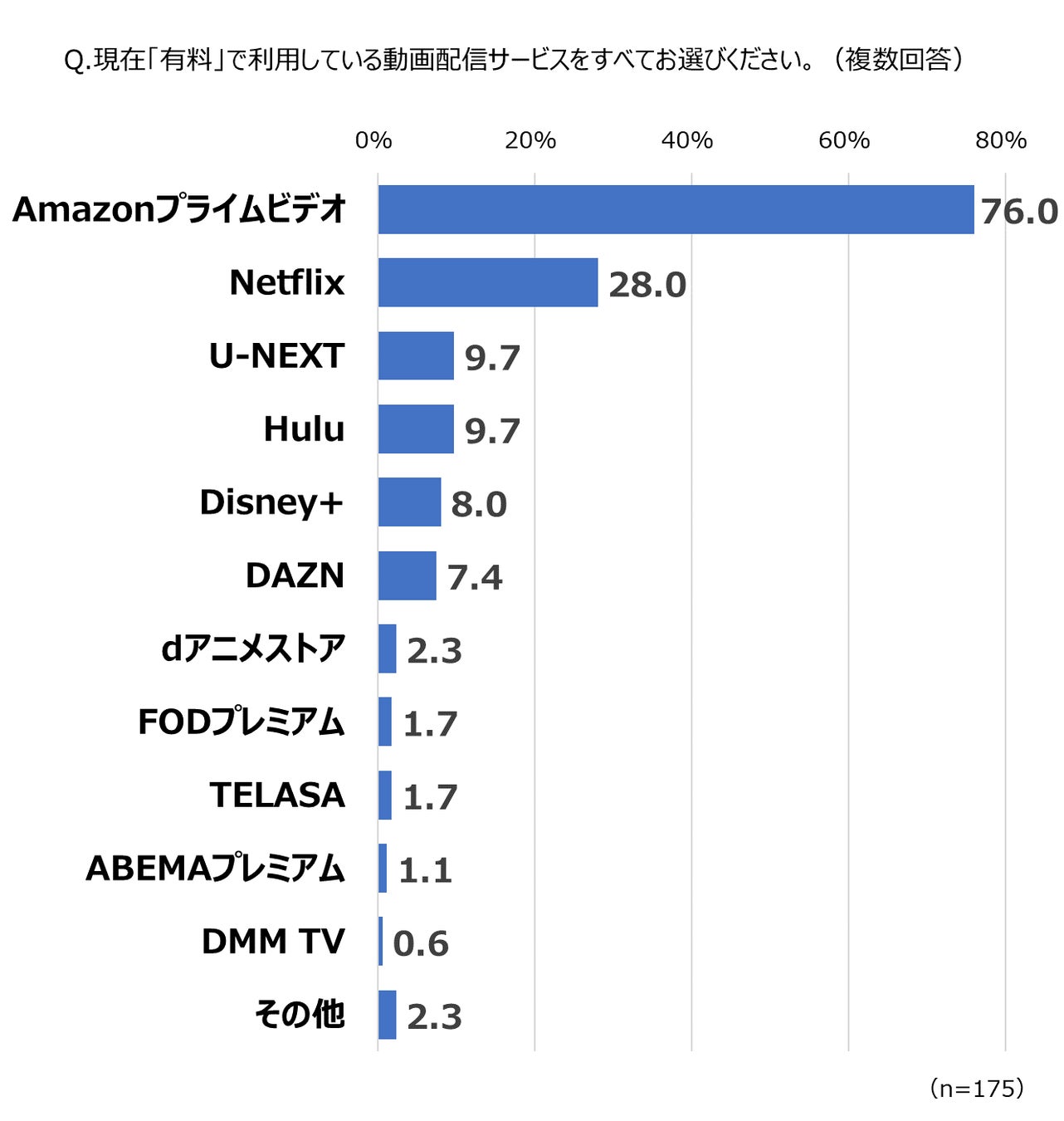 有料動画配信サービス利用者の約8割が「Amazonプライムビデオを視聴」と回答